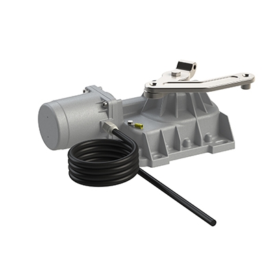 Electromechanical underground motor HIGH SPEED BRUSHLESS low voltage, super intensive use, with native encoder on-board, irreversible, ideal for swing gates with leaf up to 3 m. Standard version with short 2 m cable.