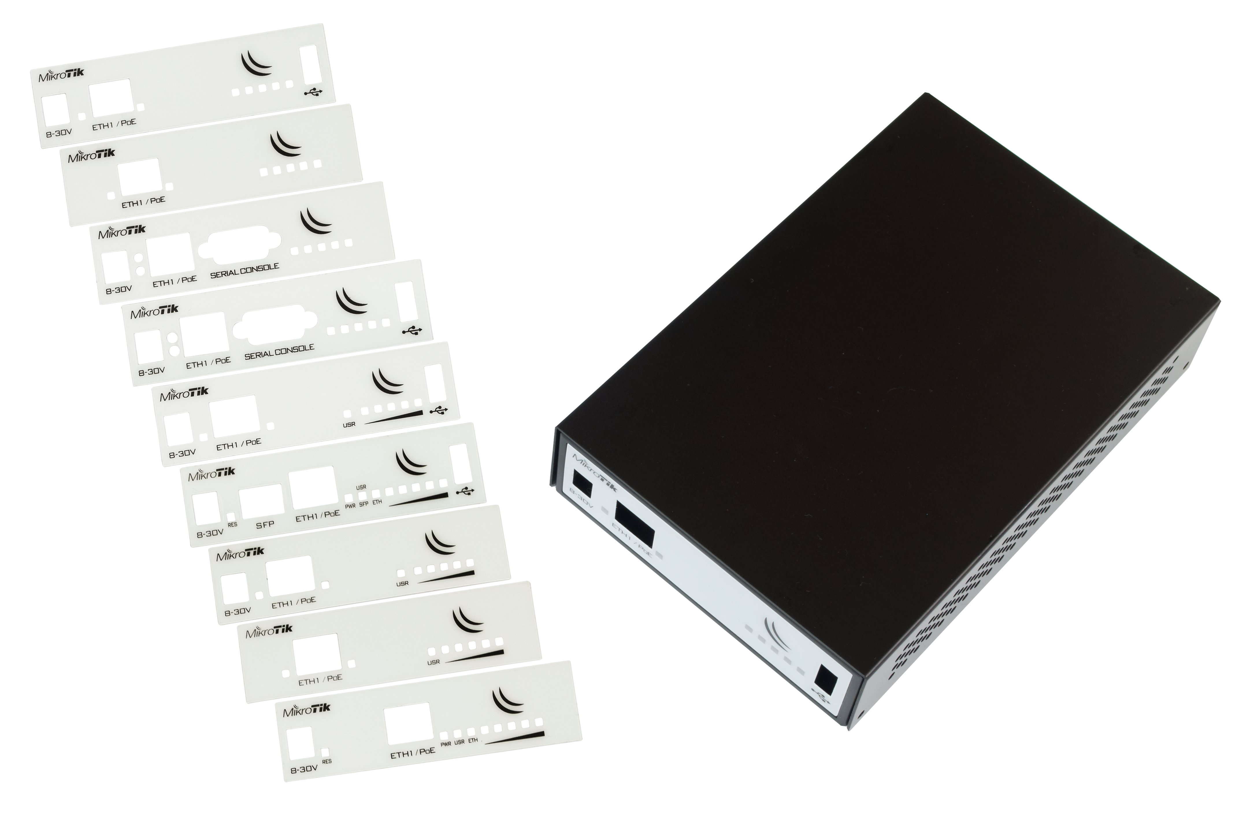 CA411-711 is new indoor case for RBM11G, RB411, RB911, RB912 and RB922 series. It has changeable front panels, so you can choose one that fits the product that you actually use. Also, case is higher to accommodate high-power wireless cards and has wall mounting holes on the back.