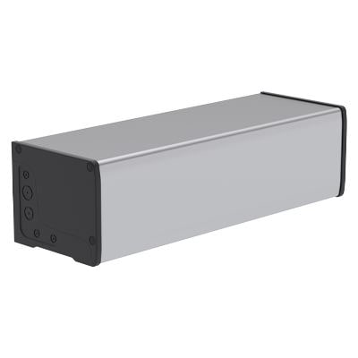 Electromechanical motor BRUSHLESS IPU TECHNOLOGY low voltage, intensive use, irreversible, on-board power inverter with integrated digital encoder, ideal for single-wing and double-wing doors, mechanical stop on opening. Without slide arm, preassembled motor for left installation.